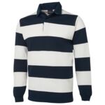 65% Polyester for durability, and 35% Cotton for comfort.,Cut for a classic fit with ribbed sleeve cuffs and an internal contrast woven back neck dome.,350gsm rugby knit fabric, Straight hem with side splits.,JB's concealed 3-button placket